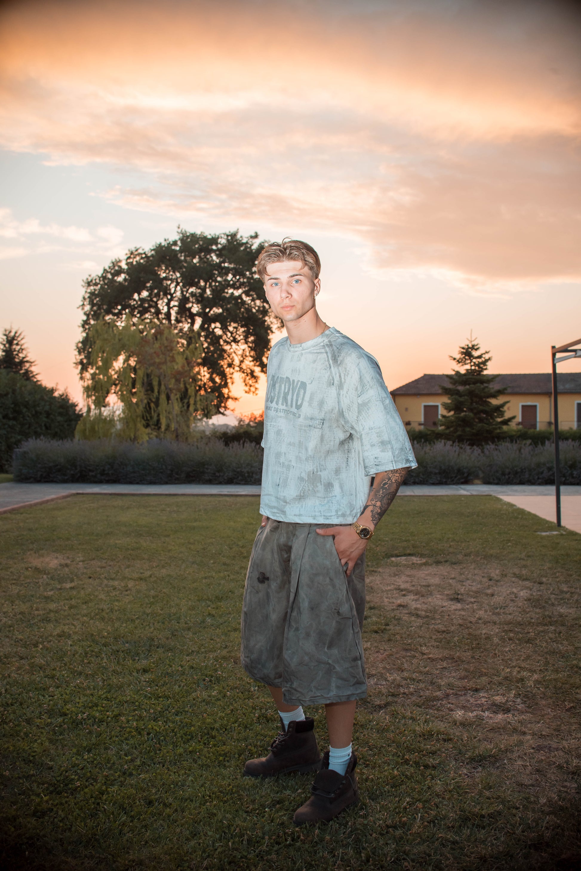 L'articolo è un capo custom, completamente cucito e pitturato a mano.