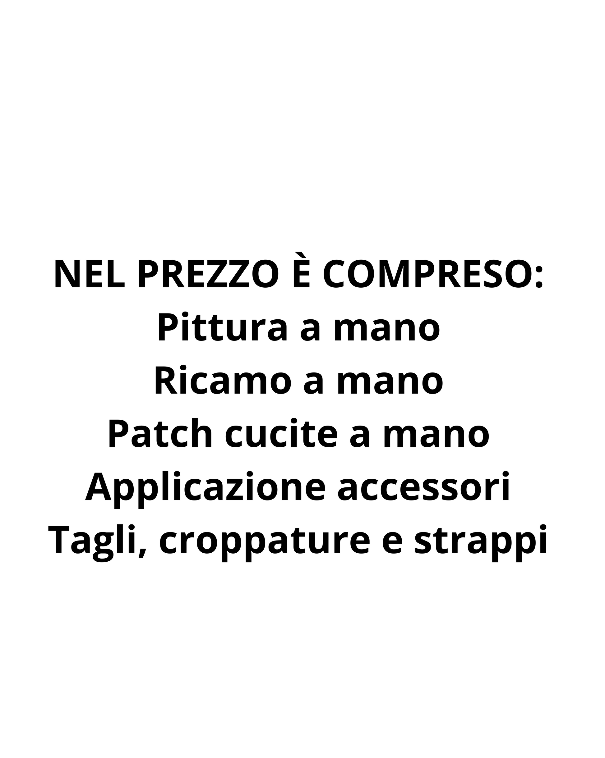 L'articolo è un capo custom, completamente cucito e pitturato a mano.