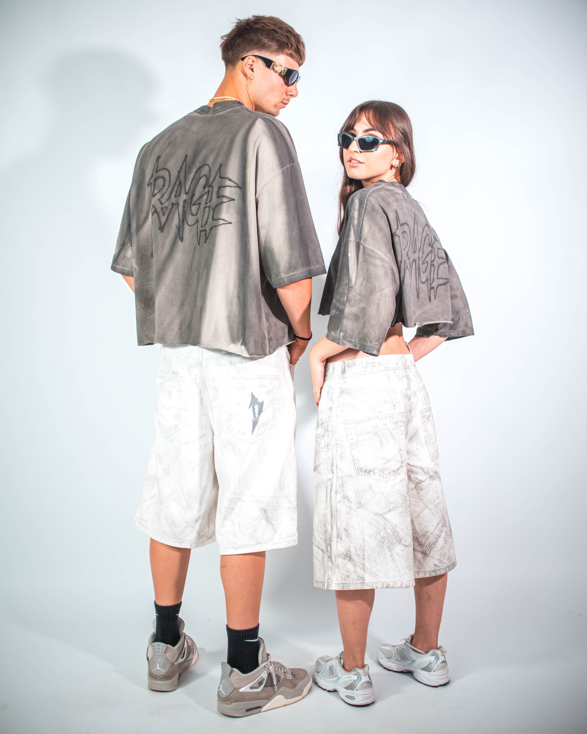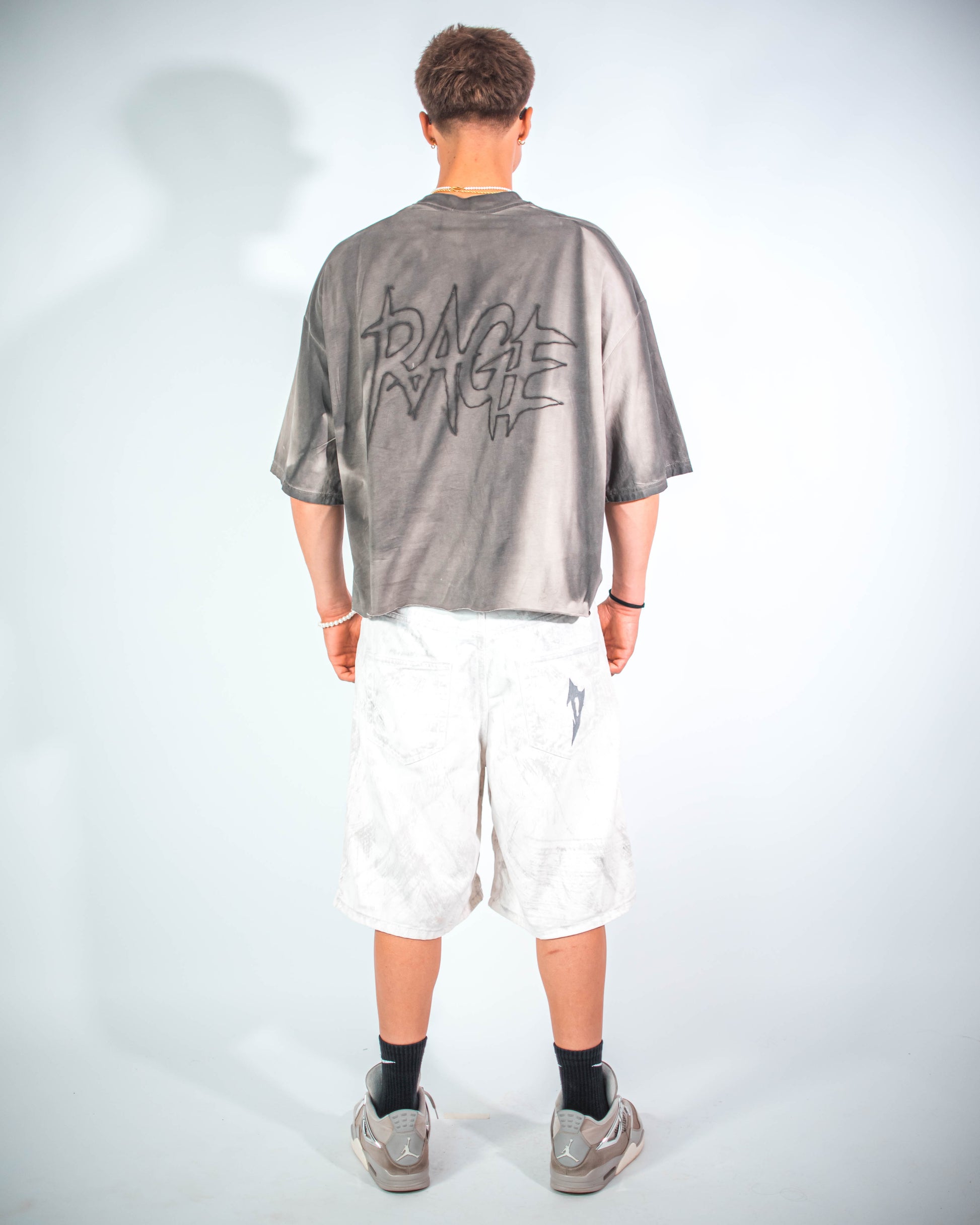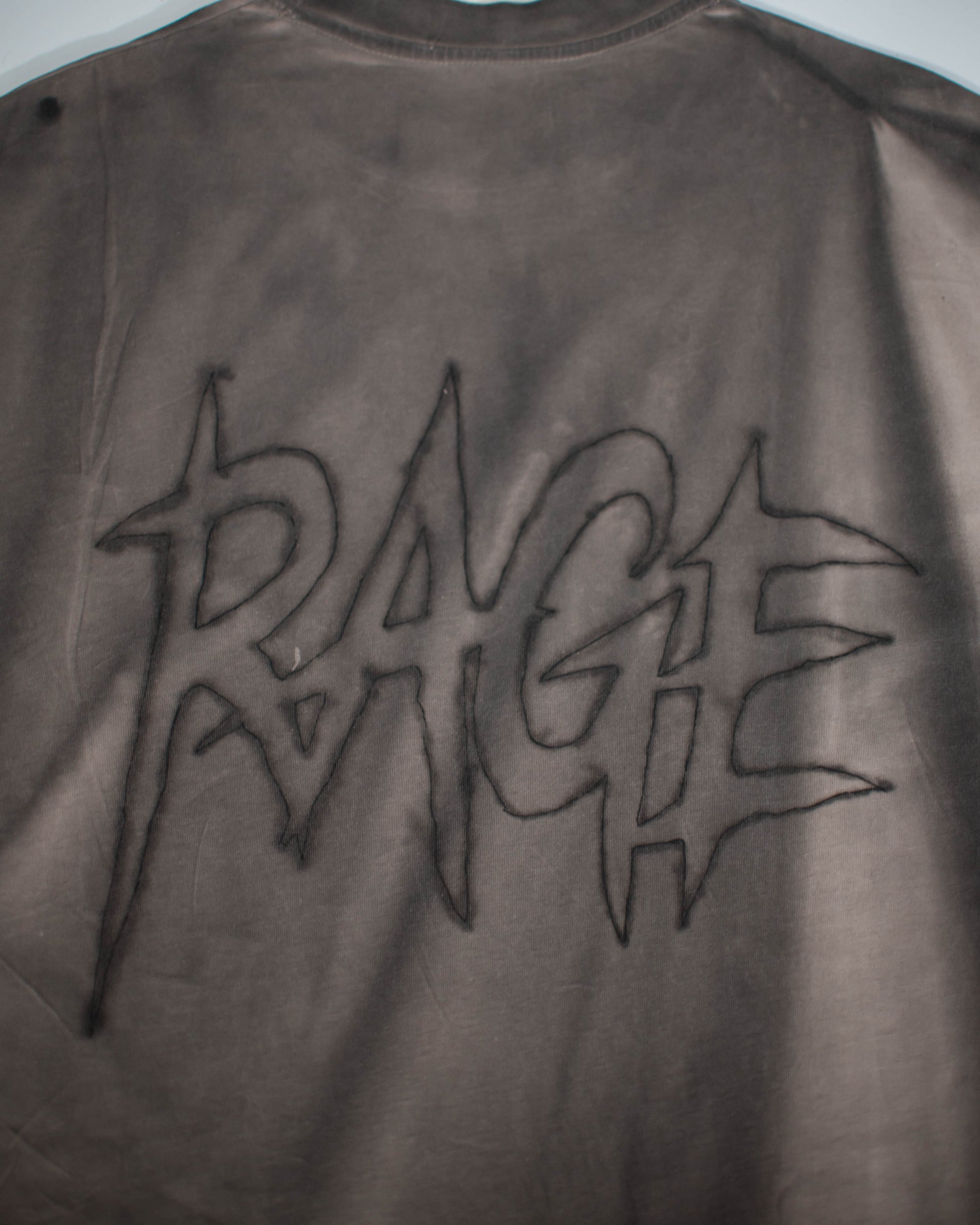 TEE customizzata a mano, con effetto slavato e scritta "Rage" aerografata