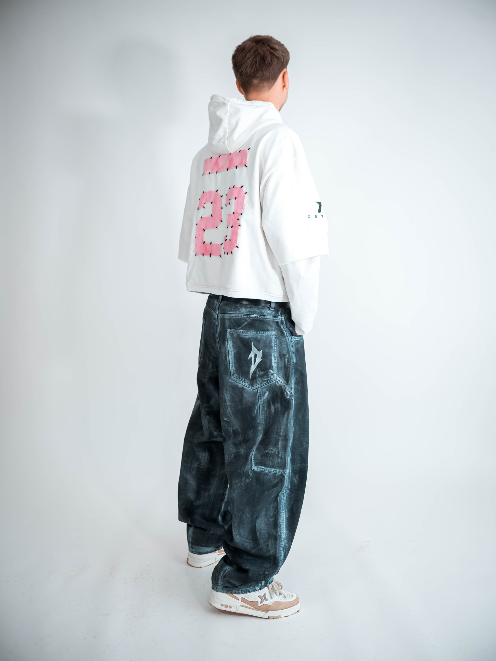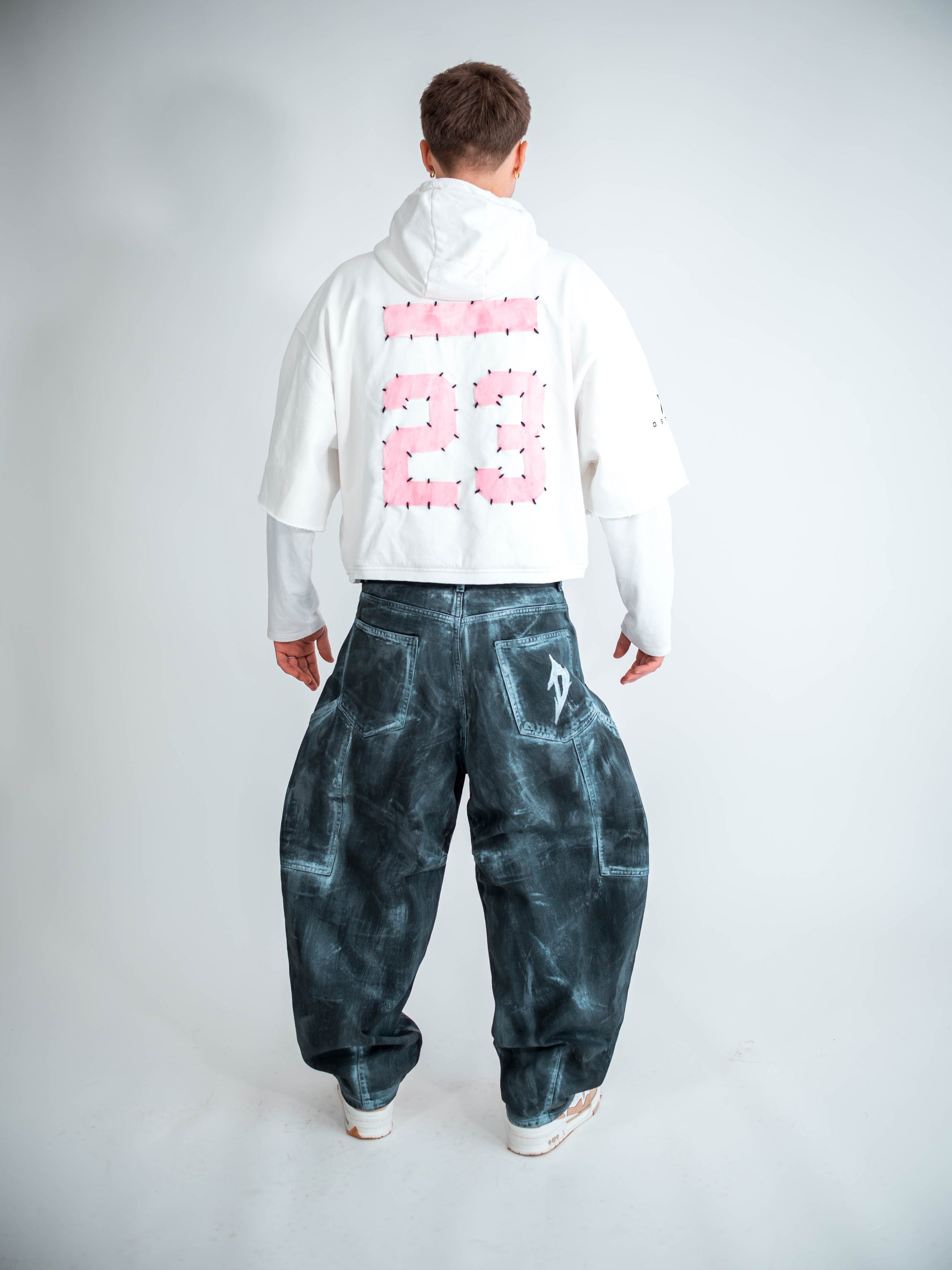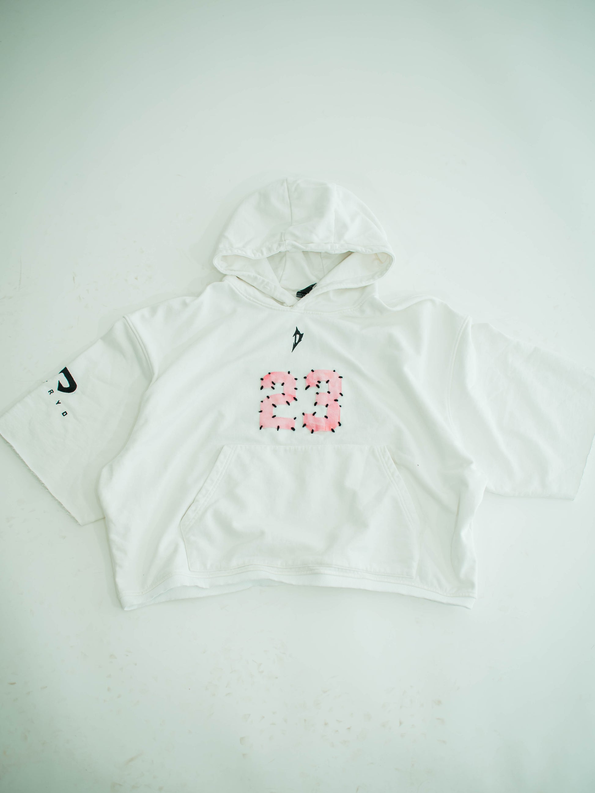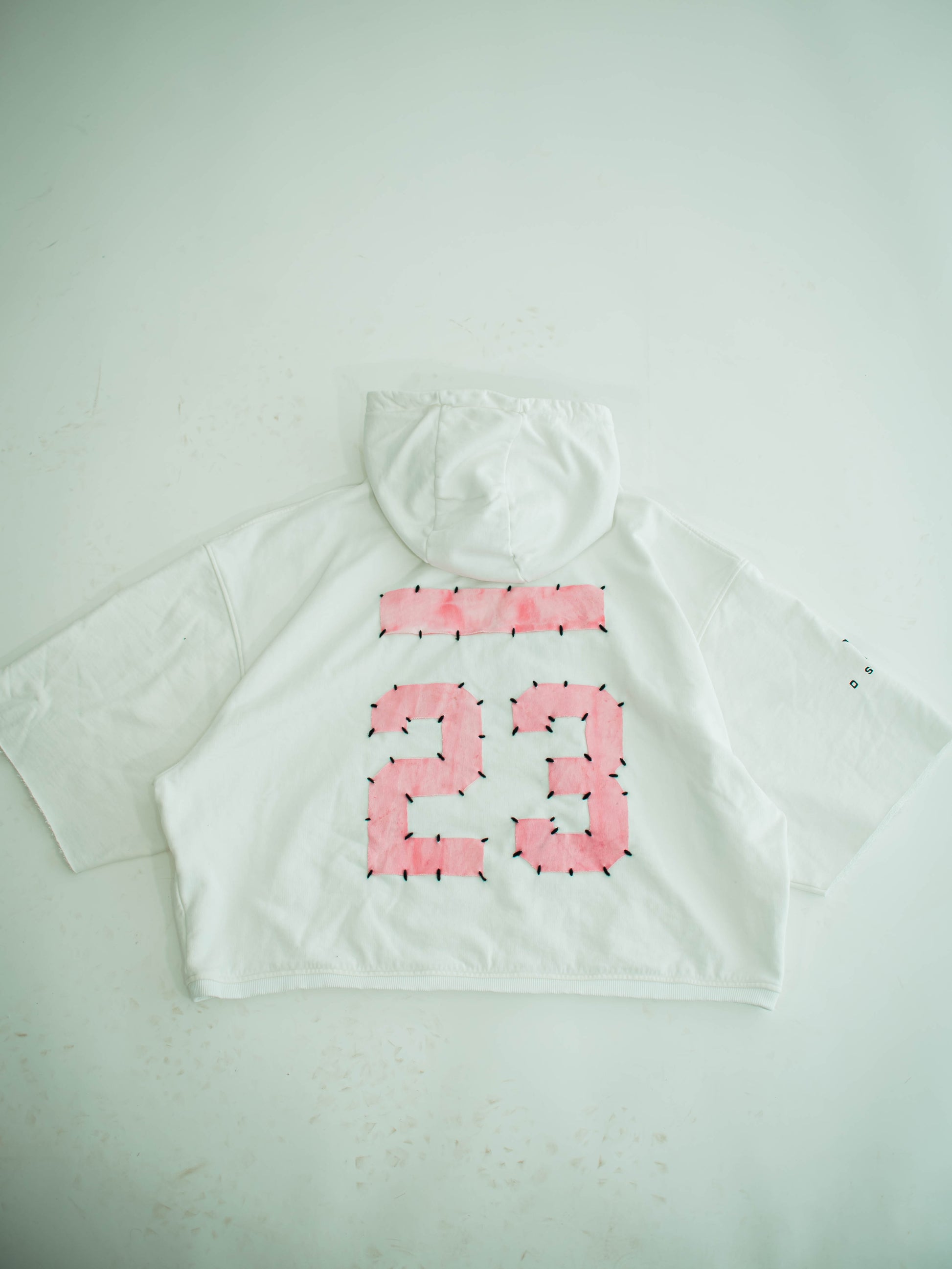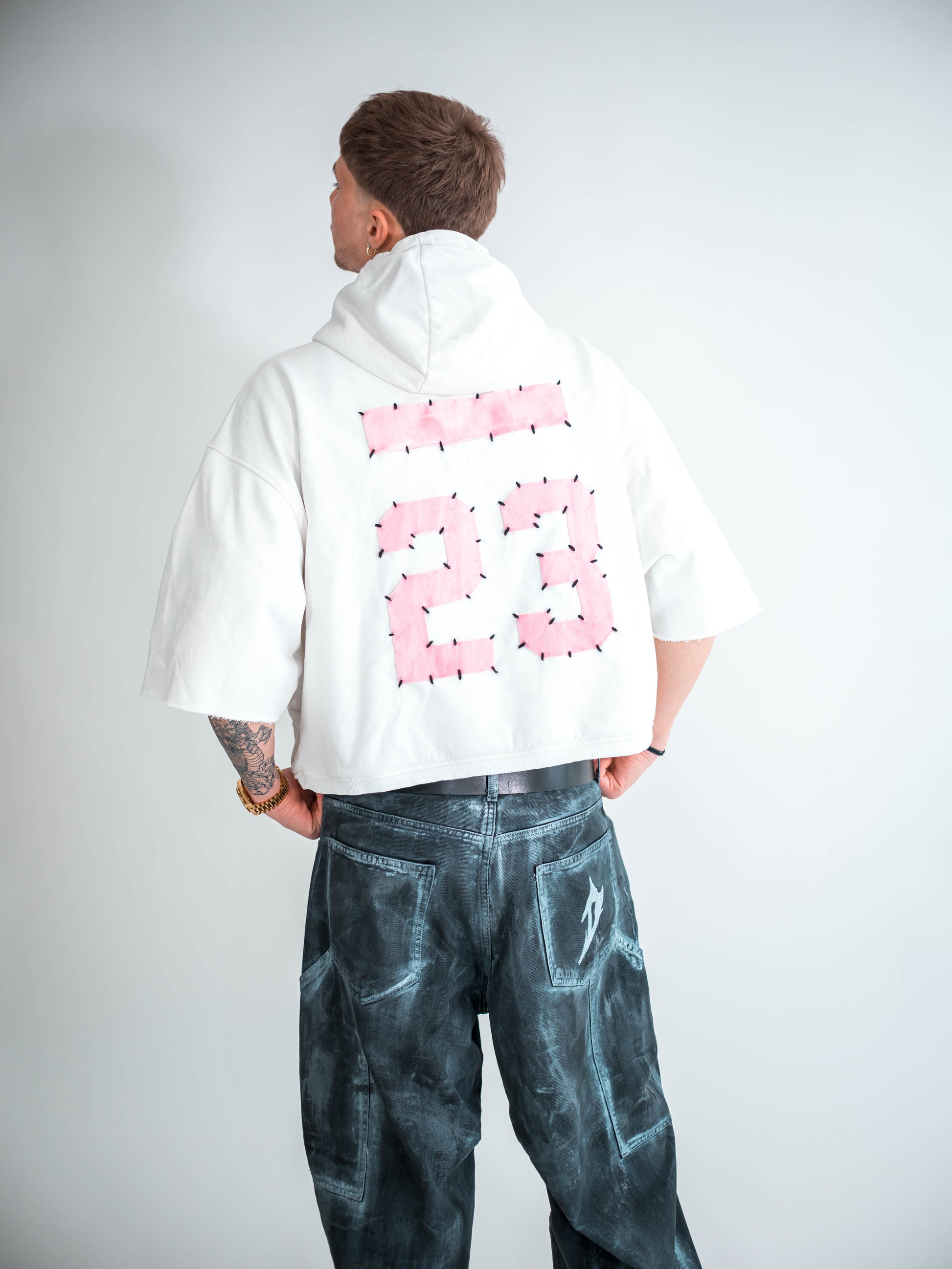 Hoodie rectangular fit, 100% cotone made in italy. Felpa customizzata con maniche tagliate, vengono ritagliate e cuciete a mano i numeri scelti dal cliente, dettagli e nome pitturato a mano. Peso effettivo hoodie 1kg
