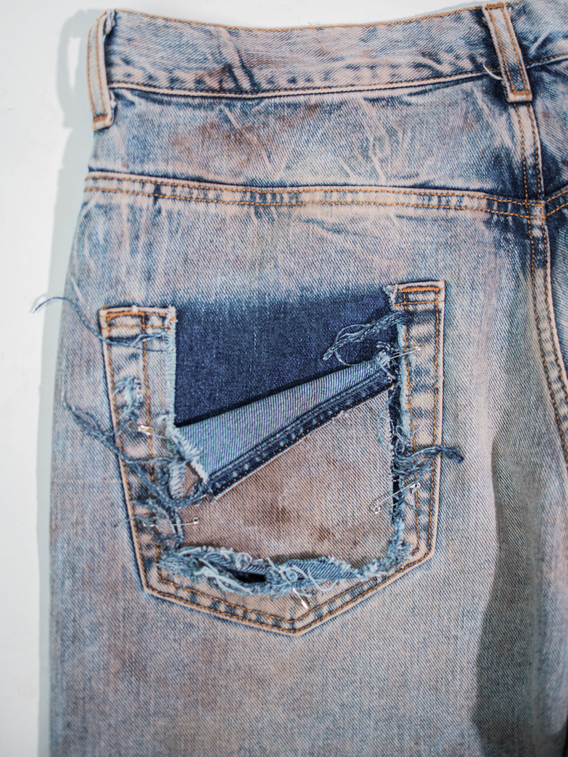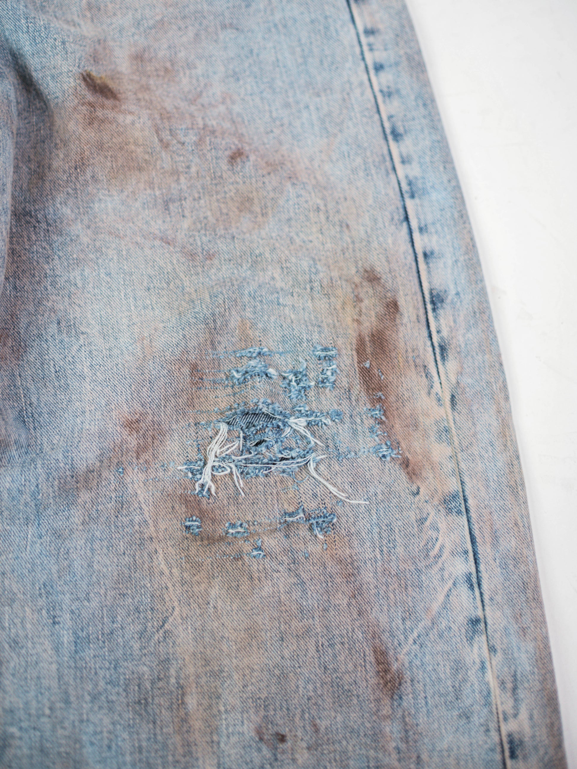 Versione 2.0 del Jeans dirty, presenta sporcature e sfrangiature realizzate a mano. Logo dipinto sulla tasca posteriore e rimozione con spillatura della tasca sinistra